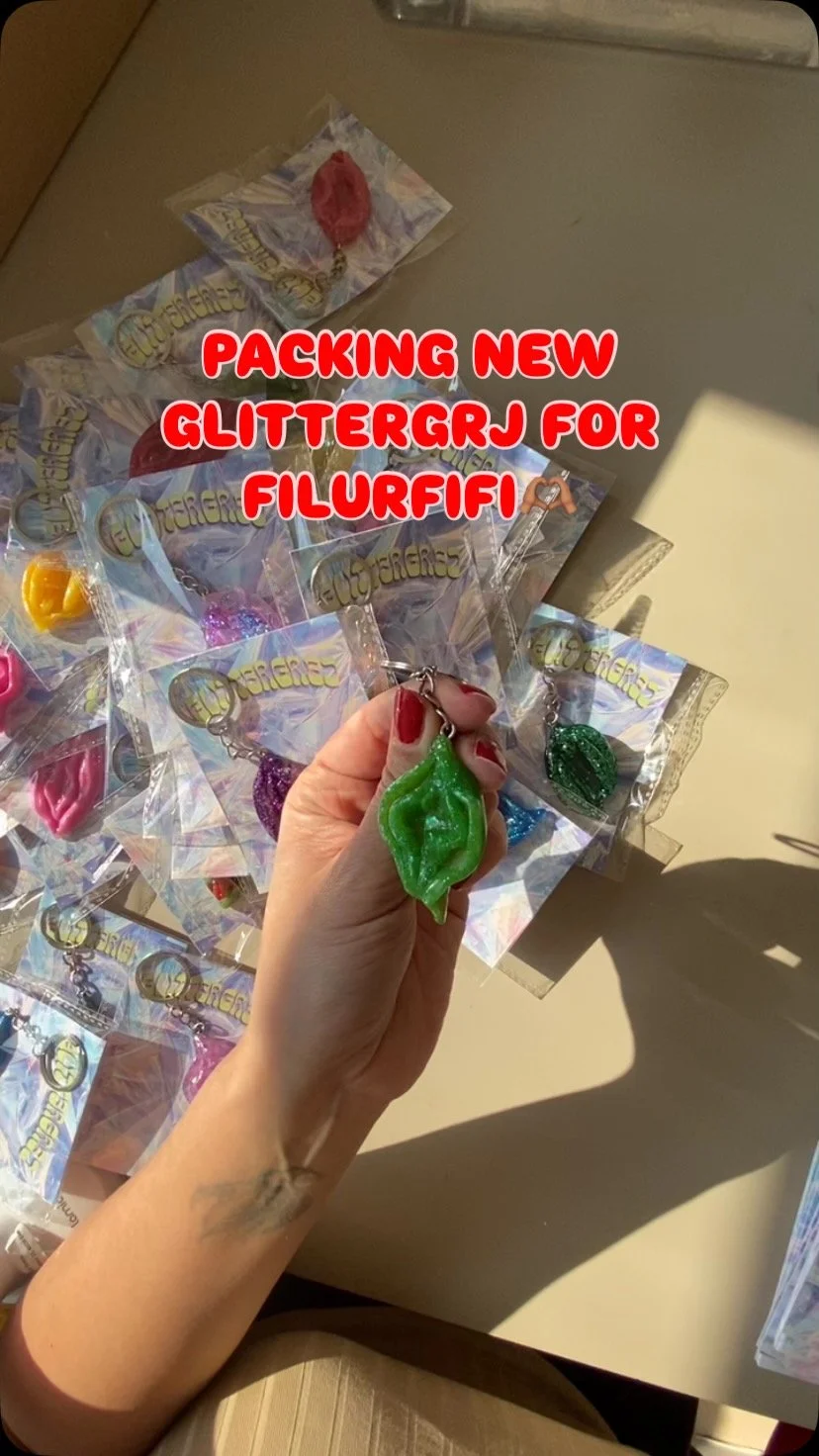 Hi, I’m Maya doing handmade glam to brighten up your day! I first started Glittergrej because I wanted to empower people and glitter up your life <3 The first thing that came to mind was: “I’ll just make a motherfucking pussy keychain”